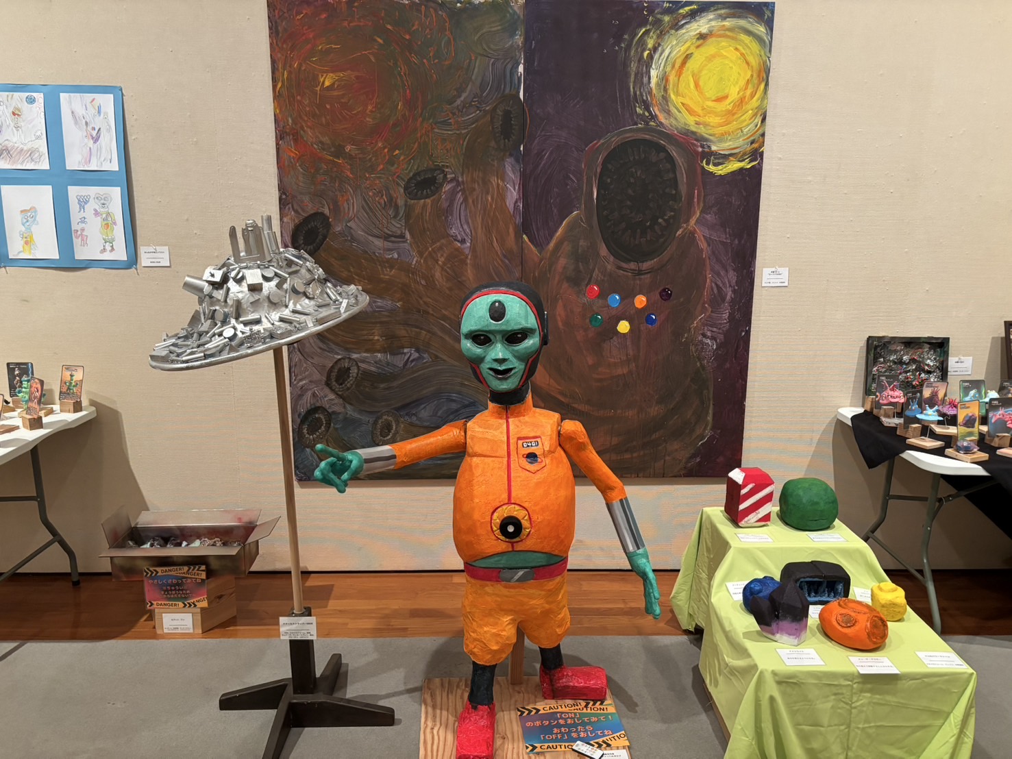 みんなの美術展『みんなの宇宙人と宇宙』に参加しました! 2025.09.102025.09.29 令和7年9月5日から9月7日の3日間、愛媛県美術館にて開催された、第3回みんなの美術展【みんなの宇宙人と宇宙】に参加しました。6月から子供たちと一緒に力を合わせて作成した、宇宙人や宇宙船などの作品を展示しました。 今回『1日目57名』、『2日目479名』、『3日目404名』と計940名の方が見に来てくださいました。 たくさんの方に足を運んでいただき、うれしく思います。ありがとうございました。