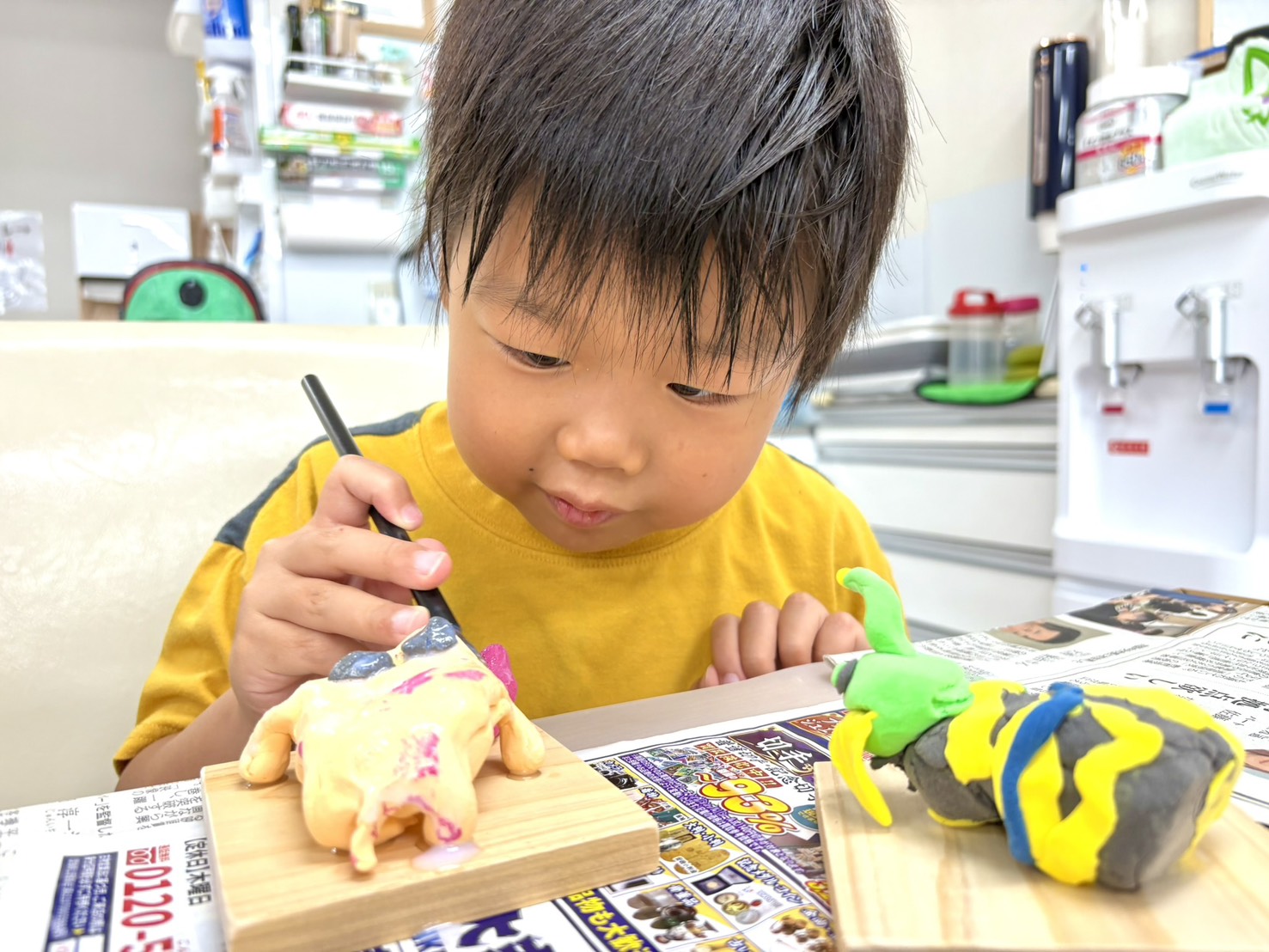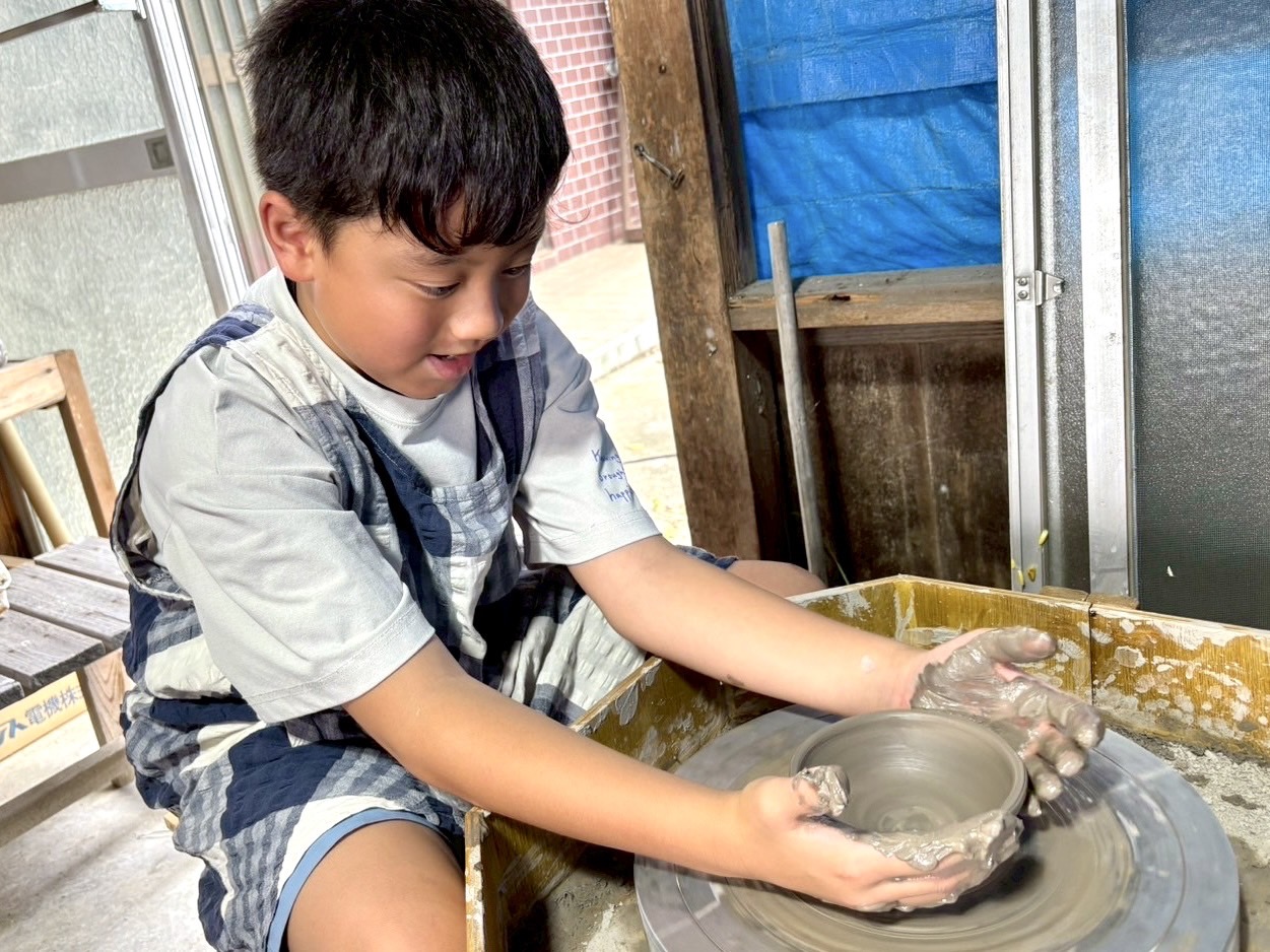 陶芸用の粘土にふれたり、陶器に絵付けをしたり、自分だけの食器を作ったりして、陶芸体験をしています。