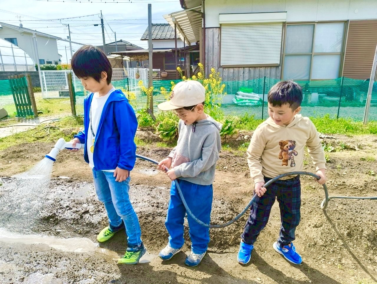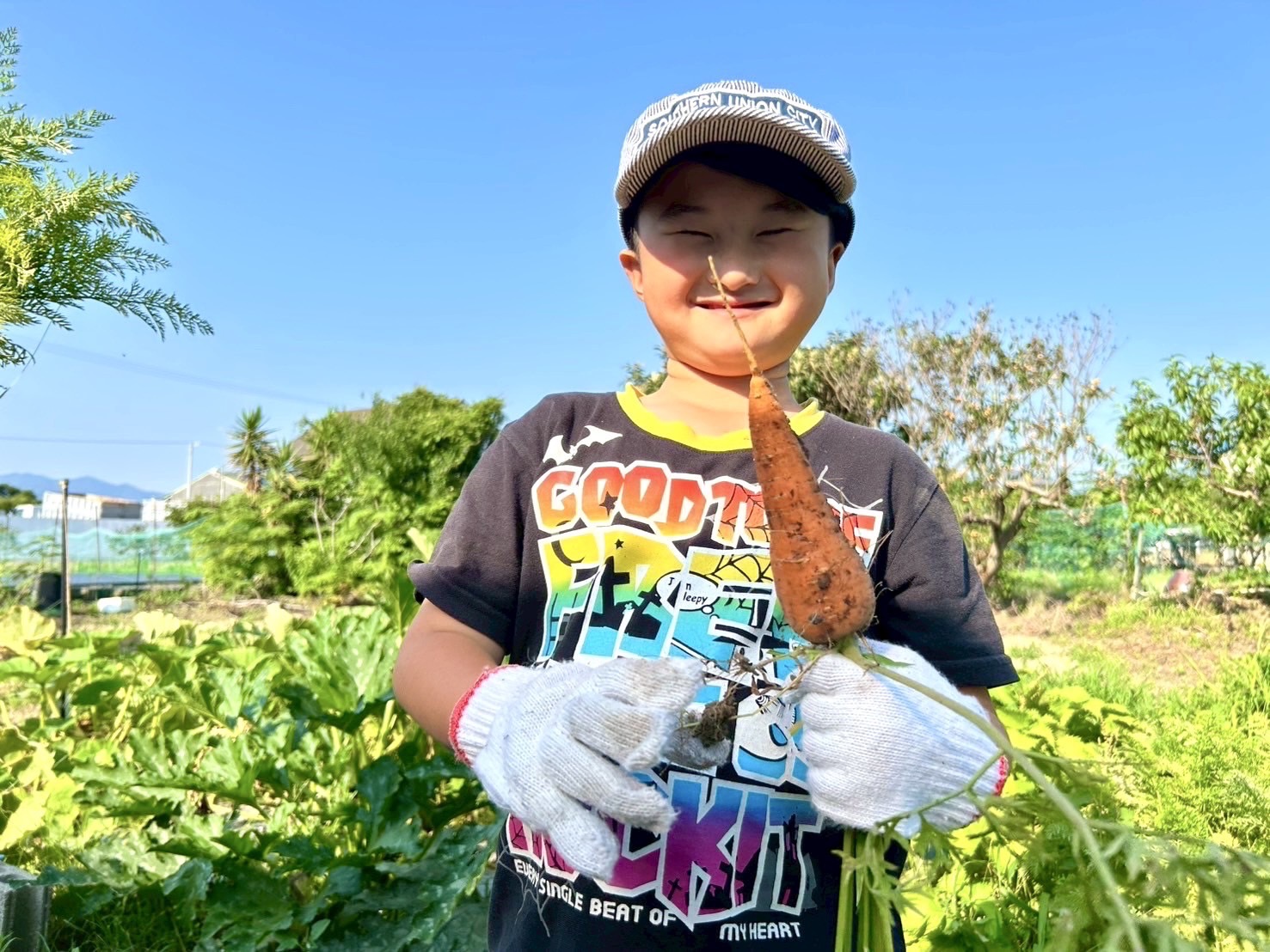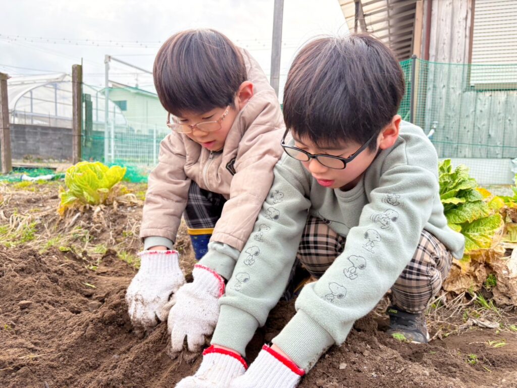 子どもたちと一緒に土に触れ、野菜を育てたり、自然とのふれあいを体験してもらっています。